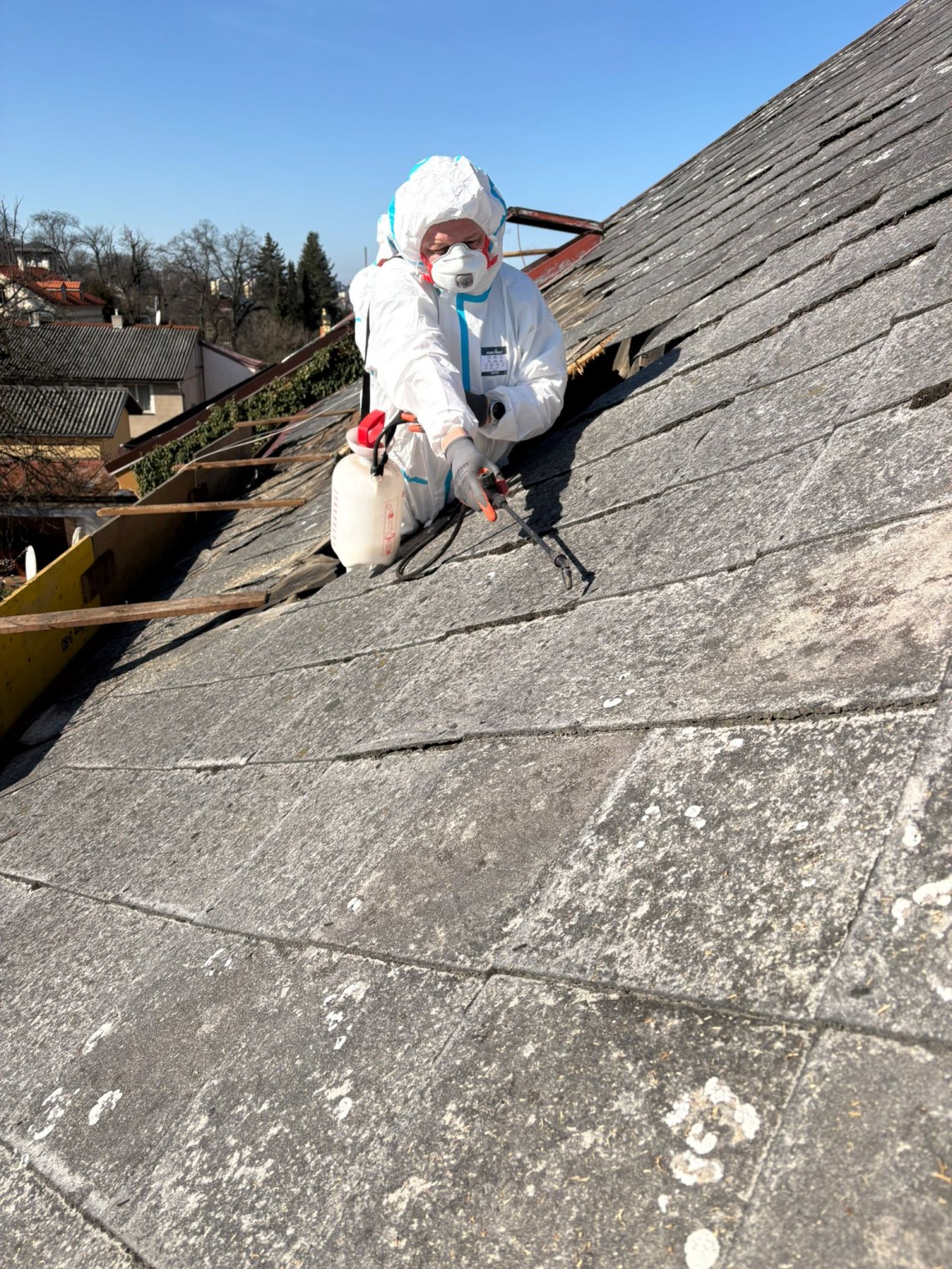 V Praze jsem tentokrát odstraňovali střešní krytinu z rodinného domu, který se bude následně bourat.